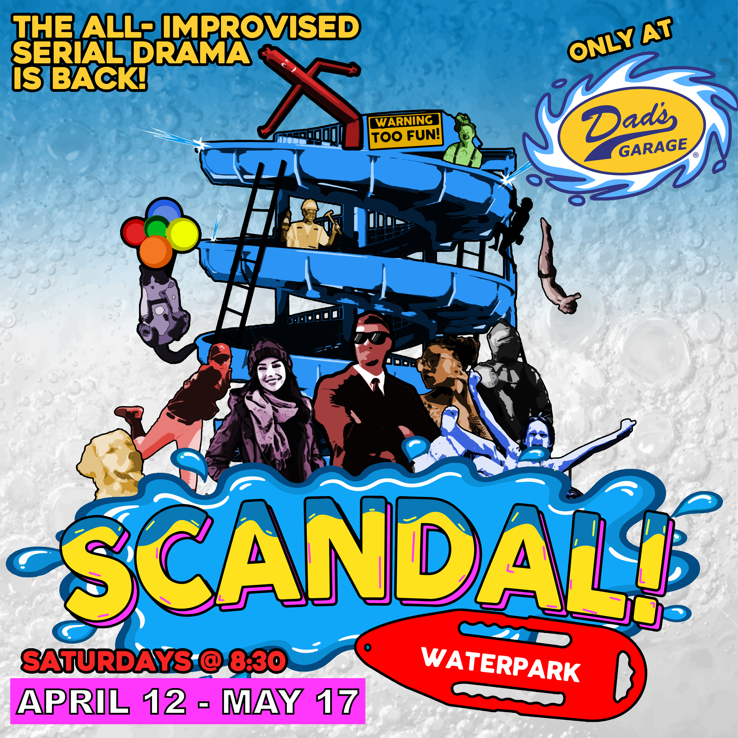 If you couldn’t make every wet and wild twist and turn of SCANDAL! Waterpark, our serial drama connect Erich Mees dished the scoop on every installment here at Dad’s Garage. Click the episode title to read a summary of the intrigue, betrayal, twists, turns, and really cool splashdowns of every episode in the 2025 SCANDAL! season!