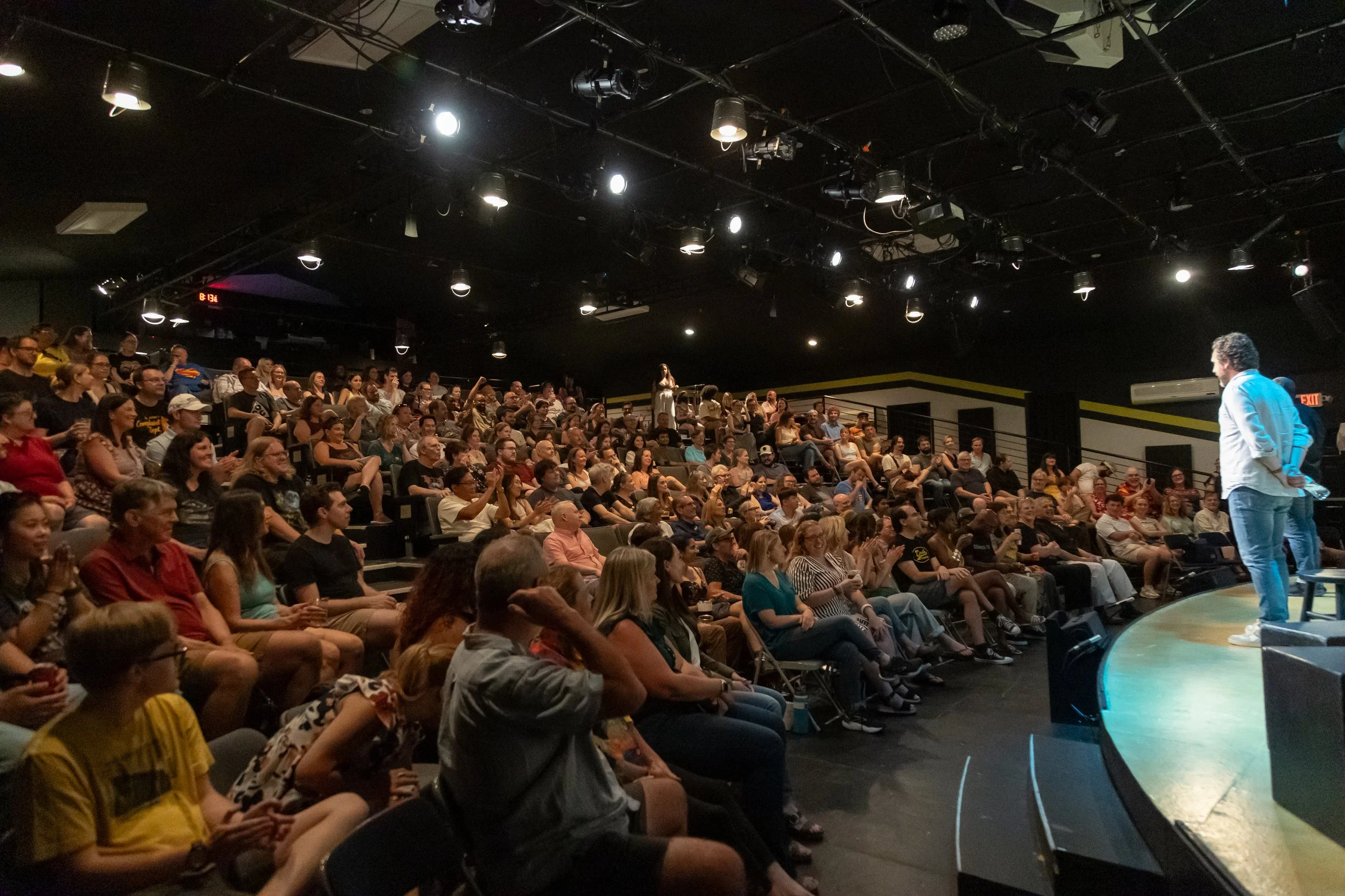 Our second floor main stage is a 205-seat theatre with raked seating directed towards a big ol’ stage. Host your own live podcast, music recital, Q3 corporate meeting, or even your own one-night only live snorkeling performance. It’s a theatre stage, after all!